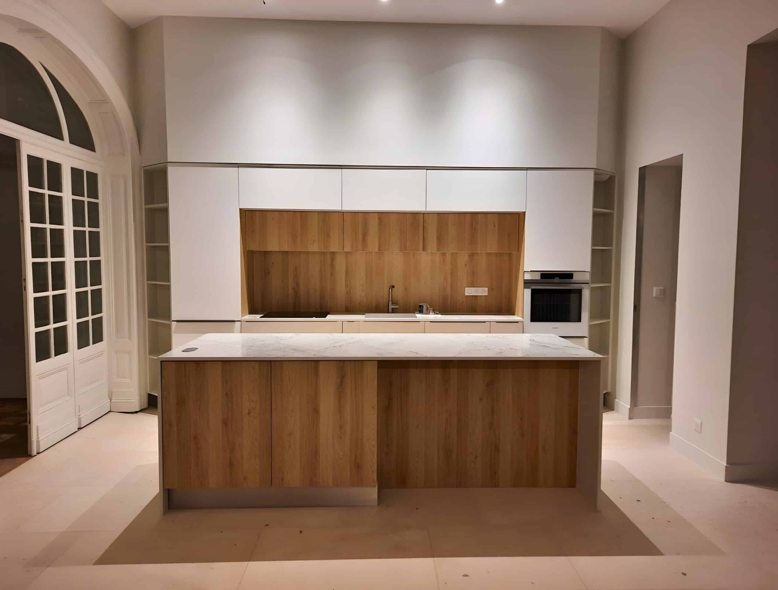 Notre installation de cuisine s’appuie sur un réseau d’artisans partenaires qualifiés que nous coordonnons entièrement. Électriciens, plombiers, carreleurs : chaque corps de métier intervient au moment optimal pour garantir un aménagement sans stress. Ce service clé-en-main vous libère de toutes les contraintes logistiques pendant la réalisation de votre cuisine sur mesure. Notre service après-vente réactif assure ensuite le suivi de votre cuisine équipée sur le long terme.